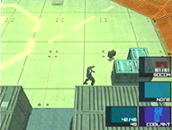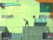 爆弾を処理したら、素早くソーコムに装備変更。その場で□ボタンを押すと、ファットマンをサーチして雷電が振り返る。3発続けて撃って、ファットマンを吹っ飛ばす。 |